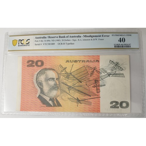 AUSTRALIA 1985 . TWENTY 20 DOLLARS BANKNOTE . DUAL ERRORS . MISALIGNMENT