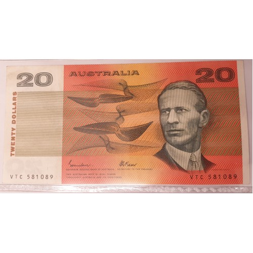Australia 1985. Twenty 20 Dollars Banknote. Serial: VTC581089. Johnston/Fraser.