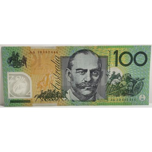 Australia 2010 One Hundred 100 Dollars Banknote. Serial: AA10082444.