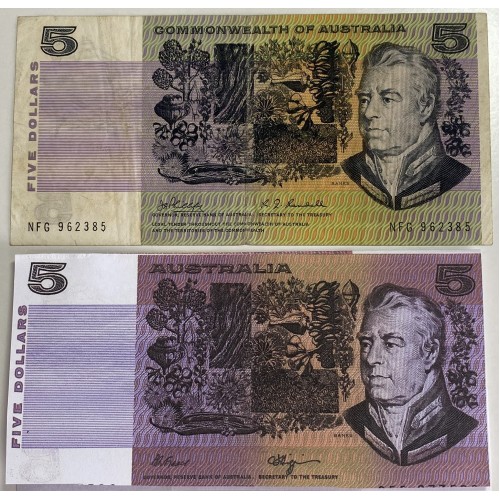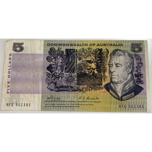 Australia 1969 Five 5 Dollars Banknote. Serial: NFG962385. Phillips/Randall.
