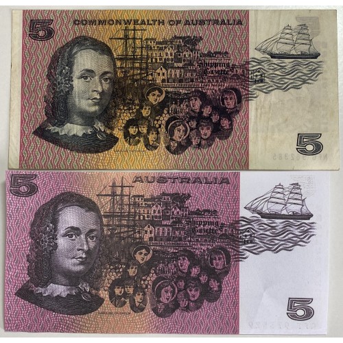 AUSTRALIA 1969 . FIVE 5 DOLLARS BANKNOTE . ERROR . COLOUR SIMULATION MISSING