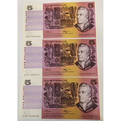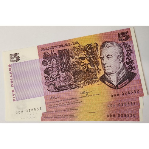 Australia 1990 Five 5 Dollars Banknote. Serial; QDH08530-2. Fraser/Higgins.