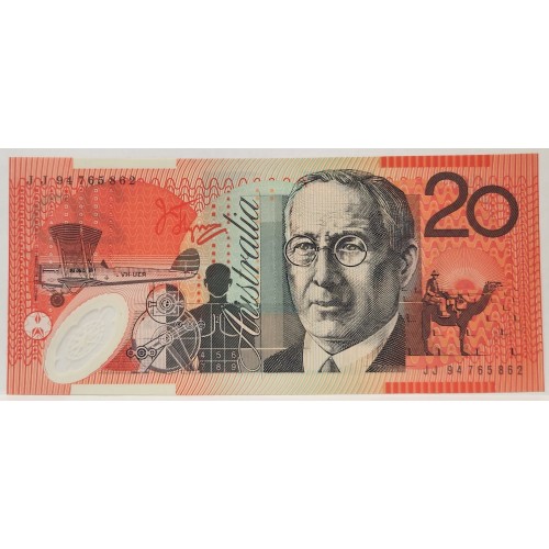 Australia 1994 Twenty Dollars Banknote. Serial: JJ94765862. Evans/Fraser.