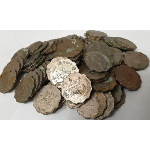 Hong Kong. Two 2 Dollars Coins. 80 Coins. $160.00 in Value. Mixed Grades.