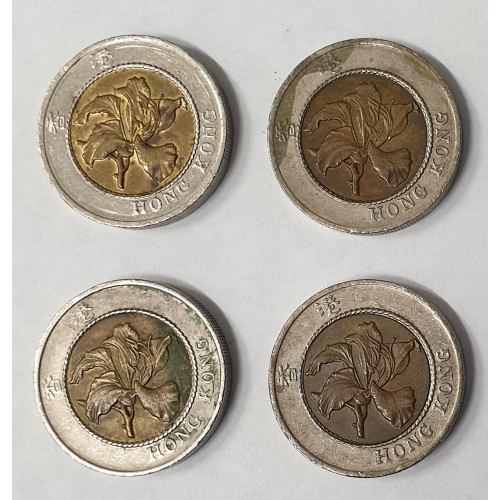 Hong Kong 1994/1995...4x Ten 10 Dollar Coins. Bi-Metal Used. But Very Scarce