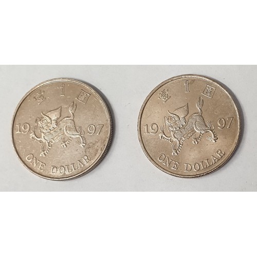 HONG KONG 1997 . ONE 1 DOLLAR COINS . 2x COMMEMORATIVE COINS . UNCIRCULATED