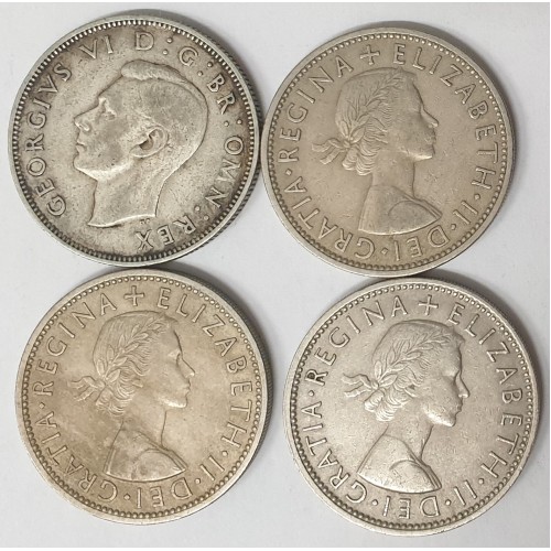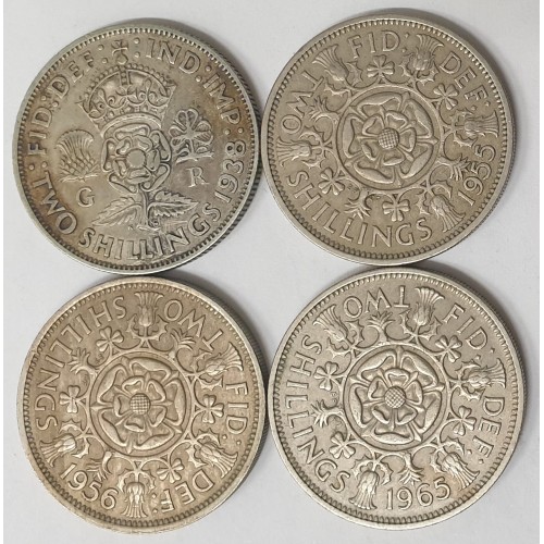 Great Britain UK 1938, 1955, 1956, 1965. 4x Florin Coins. Mixed Grades