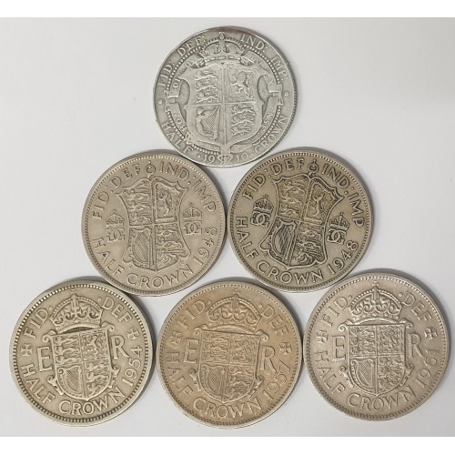 GREAT BRITAIN UK 1910- 1961. HALF 1/2 CROWNS . 6 LOT OF COINS