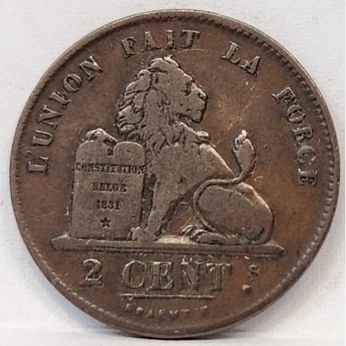 Belgium 1836 Two 2 Cents Coin. Key Date. Rare. Nice Grade. Hard to Find.