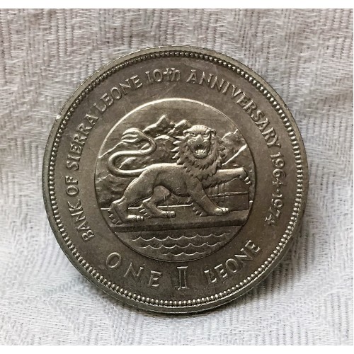 Sierra Leone 1974 One 1 Dollar Coin. 10th Anniversary. Uncirculated