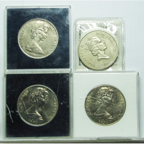 NEW ZEALAND 1969 - 1989 . SET OF 4 COMMEMORATIVE COINS . SCARCE TYPE