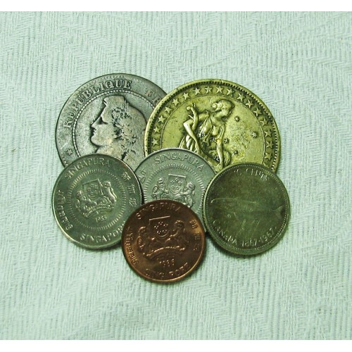 WORLD COINS . VARIOUS DATES . WITH ITALIAN BADGE