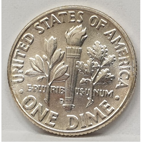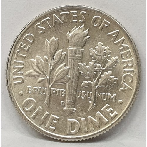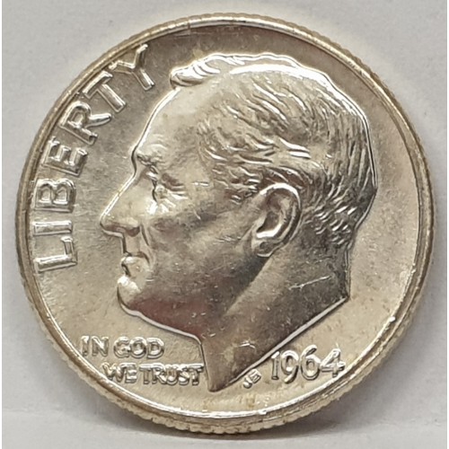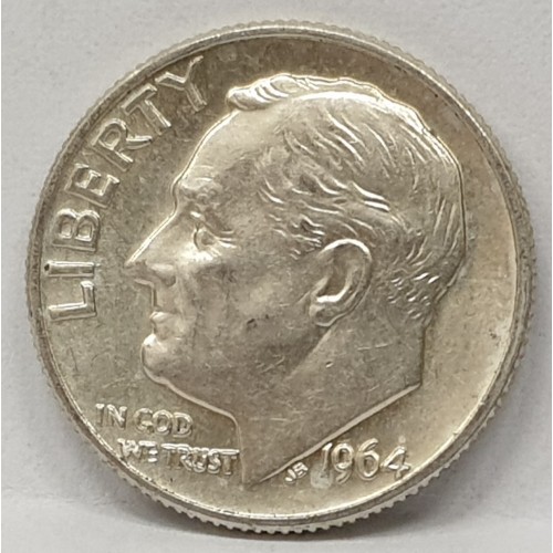 United States of America 1964D One 1 Dime Coin. Washington. Silver. Lustre.