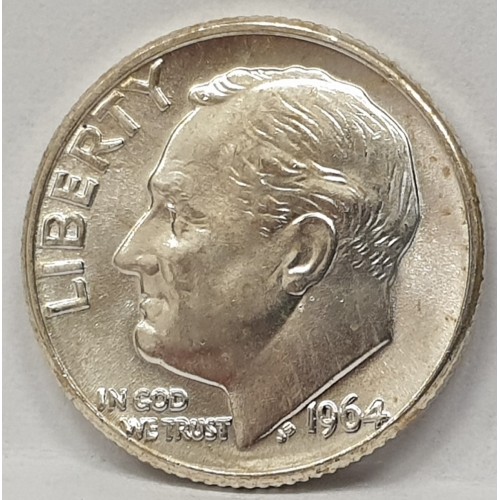 United States of America 1964D One 1 Dime Coin. Washington. Silver. Lustre.