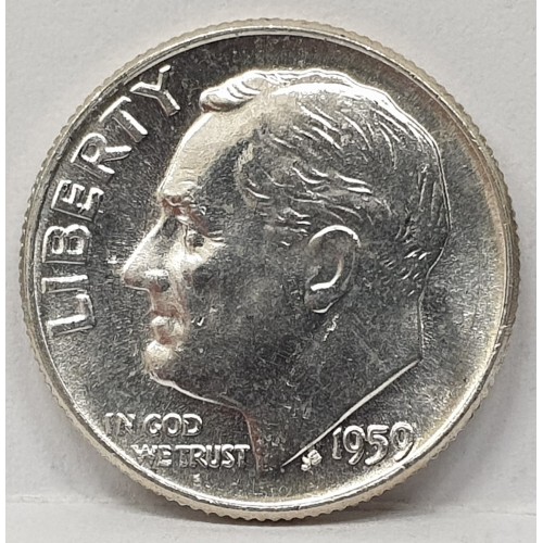 United States of America 1959P One 1 Dime Coin. Washington. Lustre. Silver.