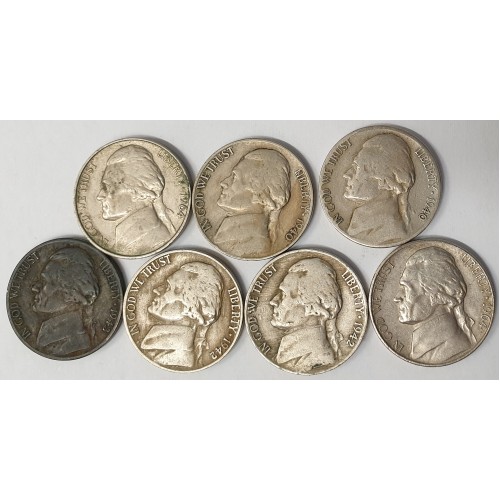 United States of America 2x 1940, 2x 1942, 1943, 2x 1964. One 1 Dime.
