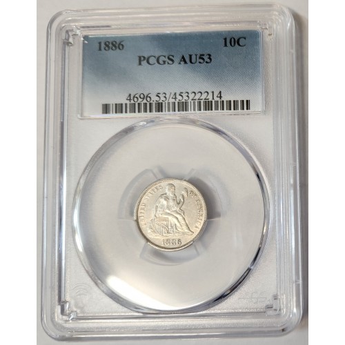 United States of America 1886 One 1 Dime. Slabbed. PCGS AU53. Rare. Extremely