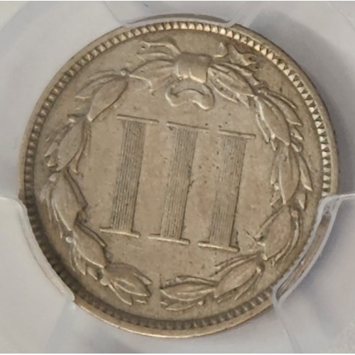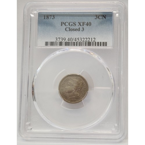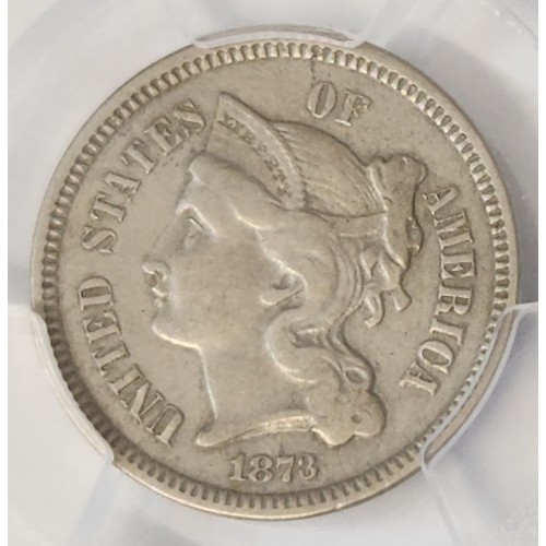 United States of America 1873 Three 3 cents. Slabbed. PCGS XF40.