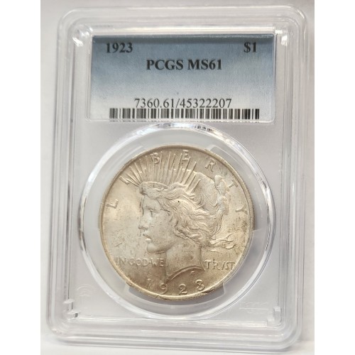 United States of America 1923 One 1 Dollar Coin. Slabbed. Peace Dollar.