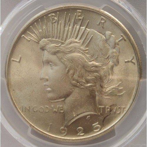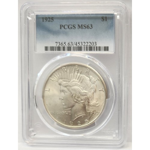 United States of America 1925 One 1 Dollar Coin. Slabbed. Peace Dollar. Gem.