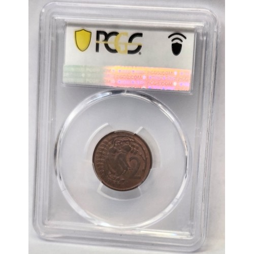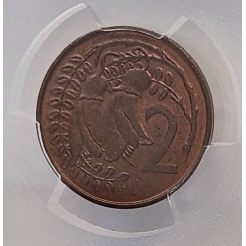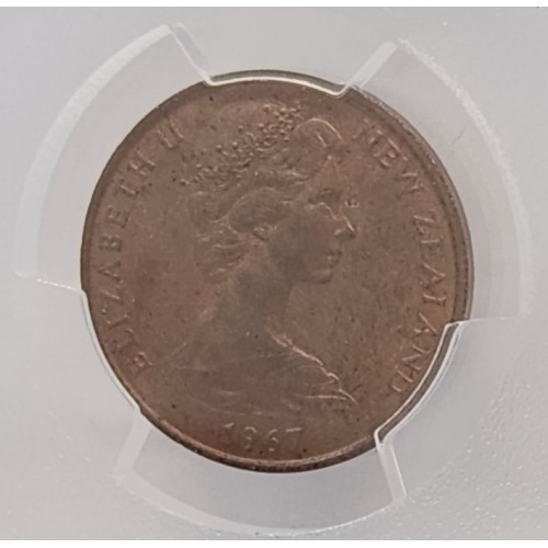NEW ZEALAND 1967 . TWO 2 CENTS COIN . PCGS GRADE MS64