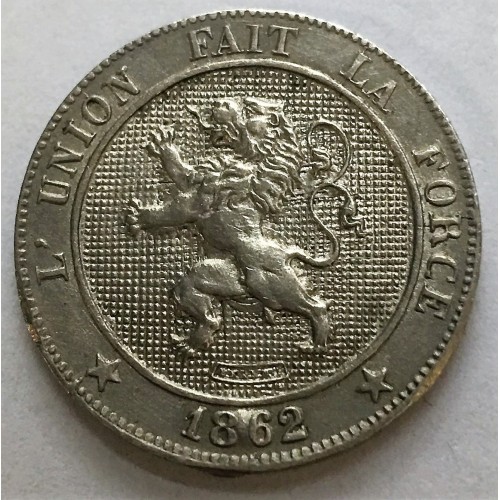Belgium 1862/1. Five 5 Centimes Coin. Overdate. Very Scarce. Extra Fine.