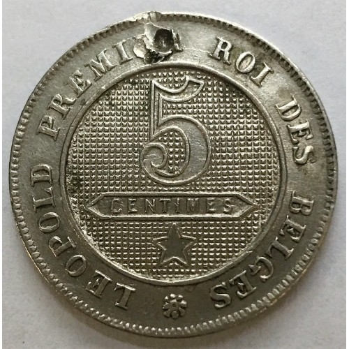 BELGIUM 1862 /1 . FIVE 5 CENTIMES COIN . OVERDATE . RESTAMPED