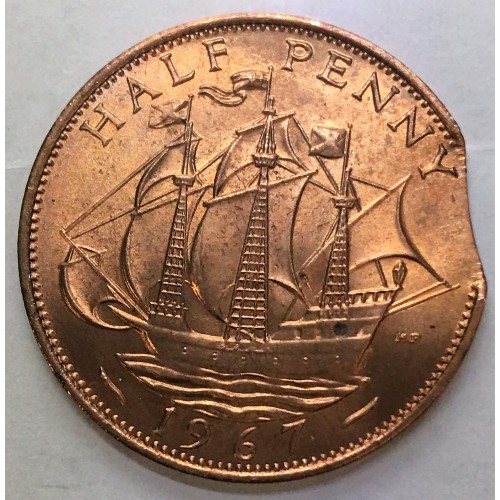 GREAT BRITAIN UK 1967 . HALF 1/2 PENNY . ERROR . CLIPPED PLANCHET