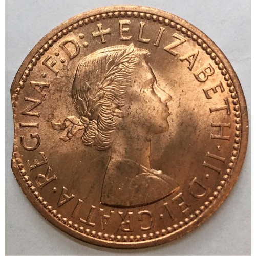 Great Britain UK 1967 Half 1/2 Penny Error. Clipped Planchet. Uncirculated