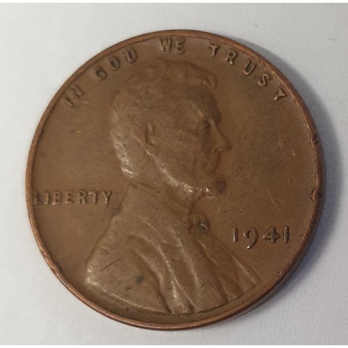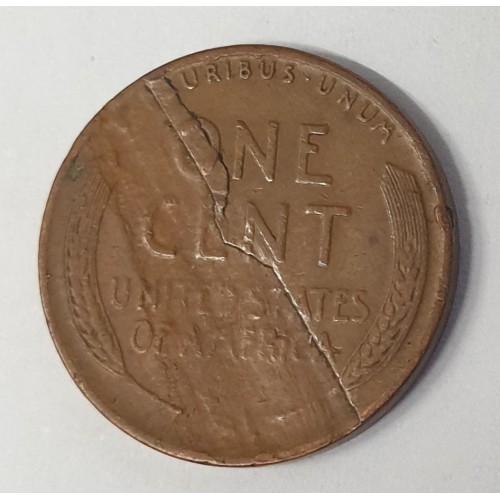 United States of America 1941 One 1 Cent Coin. Error. Cracked Planchet.