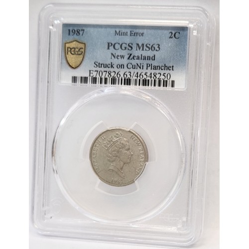 New Zealand 1987 Two 2 Cents Coin. Mint Error. Struck on CuNi Planchet. Silver.