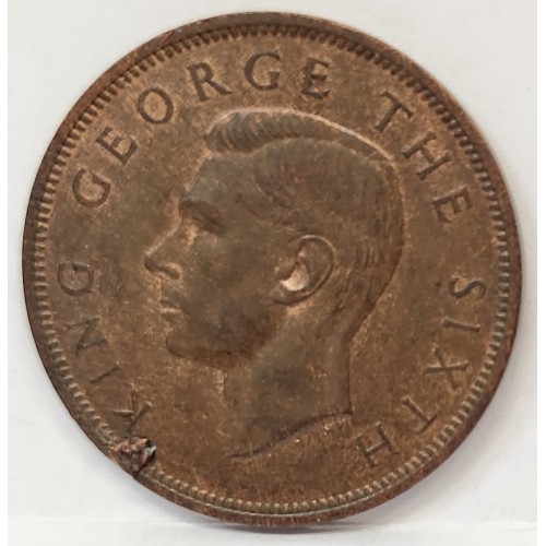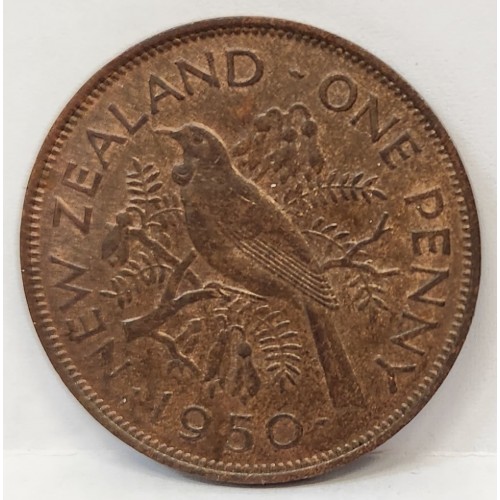 NEW ZEALAND 1950 . ONE 1 PENNY . ERROR . PLANCHET FLAW