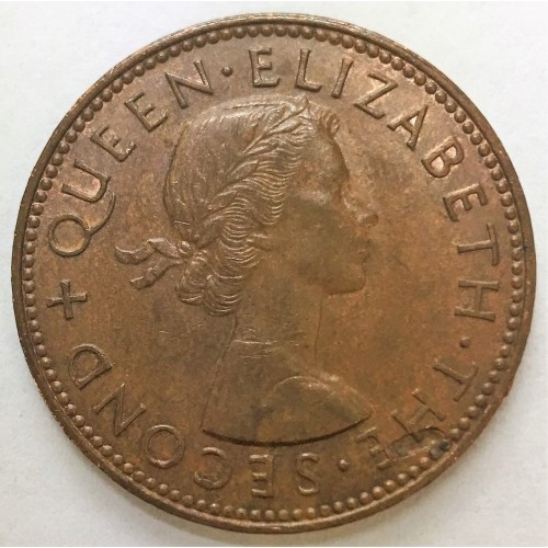NEW ZEALAND 1965 . HALF 1/2 PENNY . ERROR . PLANCHET FLAW