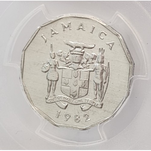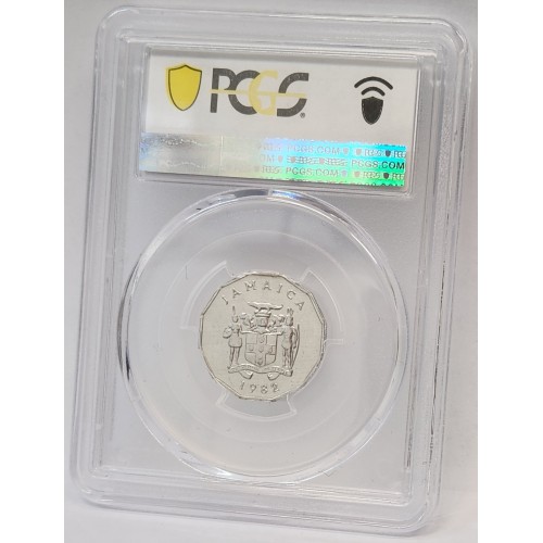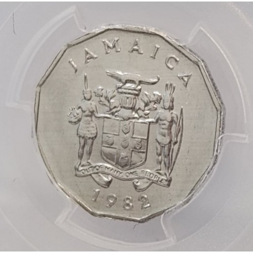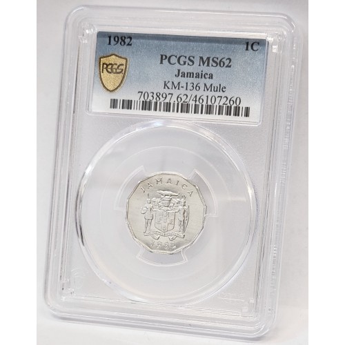 Jamaica 1982 One 1 Cent Coin. Error Mule. 2 Obverse Sides. PCGS MS62 Gem.