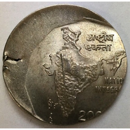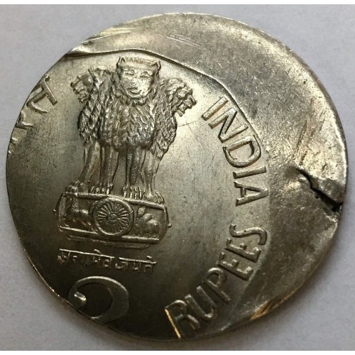 India. Undated.Two 2 Rupees Coin. Error. 30% Mis-Strike. Uncirculated