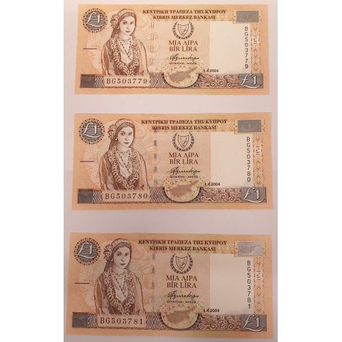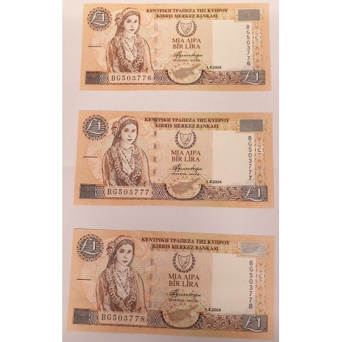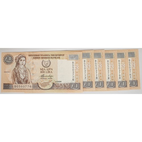 CYPRUS 2004 . ONE 1 POUND BANKNOTES . CONSECUTIVE SIX 6 . GEM UNCIRCULATED