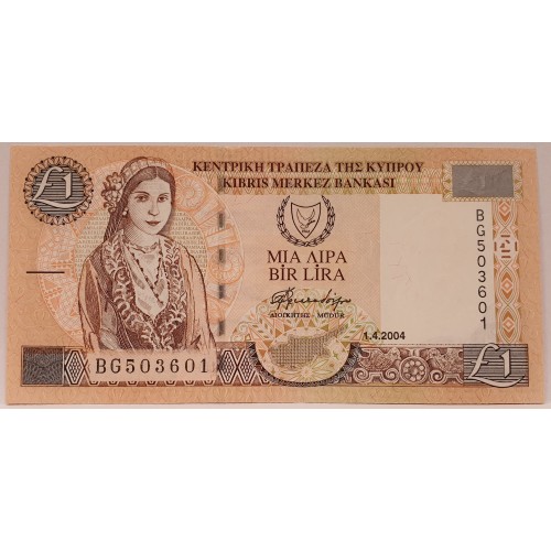 Cyprus 2004. One 1 Pound Banknote. Serial: BG503601. Scarce Type.