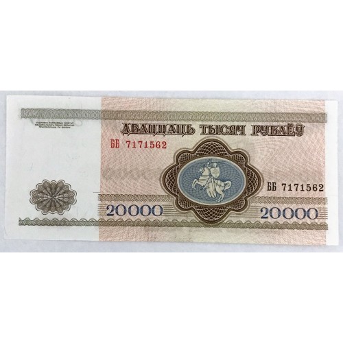 Belarus 1994. Twenty Thousand 20,000 Rublei Banknote. Serial: 7171562.