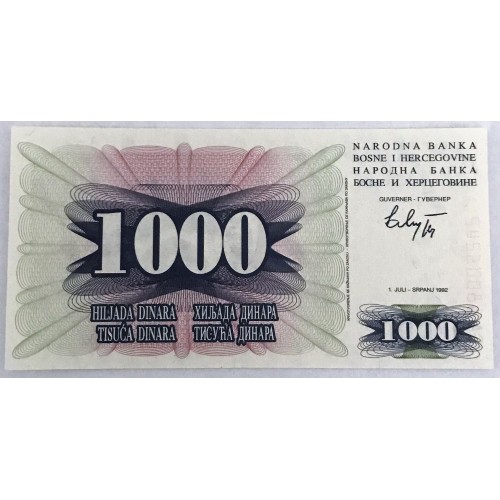 Bosnia-Herzegovina 1992. One Thousand 1,000 Dinara Banknote.