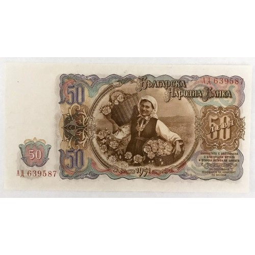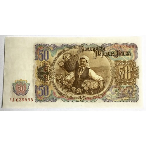 Bulgaria 1951. Fifty 50 Leva Banknote. Choice Uncurculated.
