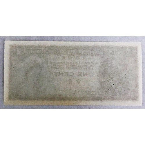 HONG KONG 1961 . ONE 1 CENT BANKNOTE . UNIFACE