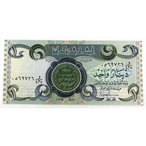 Iraq 1984 (AH1405). One 1 Dinar Banknote. Serial: 569726. Choice Uncirculated