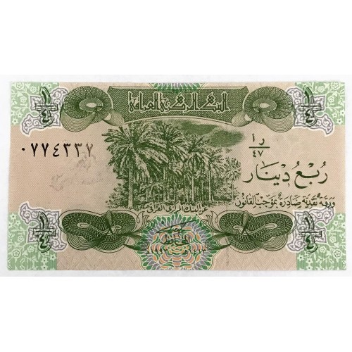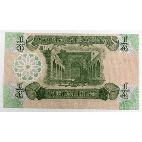 Iraq 1993. 1/4 Quarter  Rupee Banknote. Serial: 0774337. Choice Uncirculated