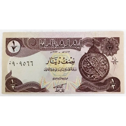 Iraq 1993. Half Dinar Banknote. Serial: 0909566. Choice Uncirculated