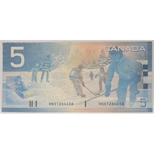 Canada 2002. Five 5 Dollars Banknote. Serial: HNS1264456. Slight Centre Fold.