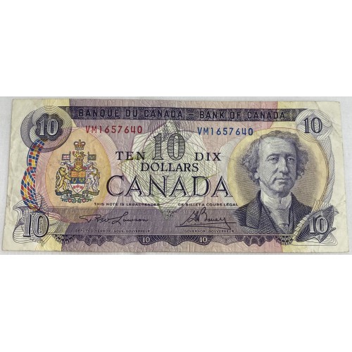 Canada 1971 Ten 10 Dollars Bankknote. Serial: VM1657640. Lawson/Bouey.
