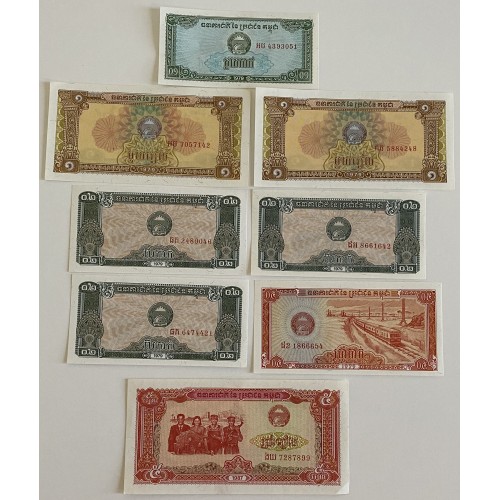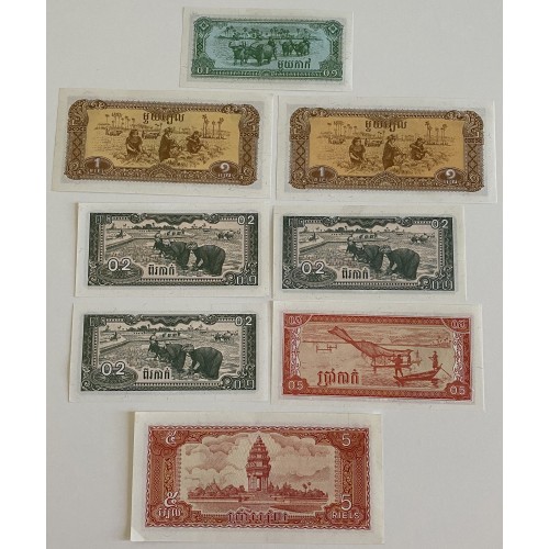 Cambodia 1979 0.1, 3 x 0.2, 0.5, 2 x One 1, Five 5 Riels Banknotes. Set of 8.