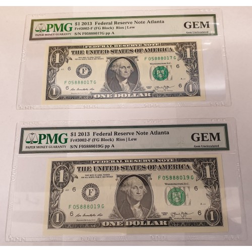 Serials: F05888017G, F05888019G. Washington State with the F and G Block.