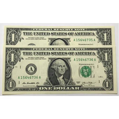 United States of America 2013 One 1 Dollar Banknote. Serial: A15646735-6A.