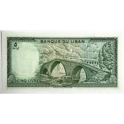 Lebanon 1986 Five 5 Livres Banknote. Serial: 903472. Choice Uncirculated